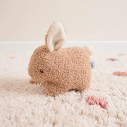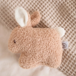 Le lapin émet un son agréable et discret qui stimule la perception sensorielle et apaise le bébé pendant le jeu comme à l’endormissement.