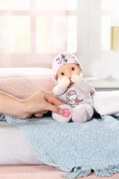 Son corps en tissu moelleusement rembourré est doux et sûr même pour les plus petits dès la naissance. La combinaison lilas clair avec de jolies appliques souligne le charmant look de la poupée. Pour un entretien simple, retirez le module sonore et lavez la poupée à la main à 30 °C.