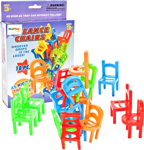 Le jeu Chaises qui tombent est un jeu d’adresse captivant pour toute la famille, petits et grands. Le but est de poser et d’empiler les chaises avec malice afin de se défaire le plus vite possible de toutes ses pièces. Chaque joueur a sa couleur et chaque manche apporte une nouvelle tension: qui fera s’écrouler la tour en premier.