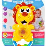 Le hochet ludique petit lion est un premier jouet interactif idéal pour les tout-petits. En actionnant l’anneau, il déclenche des mélodies, sons et rires d’enfants, tandis qu’une lumière rouge se met à clignoter, stimulant ainsi la perception visuelle. Grâce à ses dimensions compactes, il se tient facilement même par de petites mains et convient à la maison comme en déplacement.