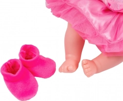 La poupée PlayTo Tina est un excellent choix pour les enfants qui aiment les chansons et le jeu interactif. La combinaison d’un corps souple et d’une tête, de mains et de pieds en caoutchouc assure des câlins agréables et un habillage facile. Grâce au module parlant en slovaque dans le ventre, elle connaît 14 phrases et 5 chansons bien connues, activées par une simple pression.