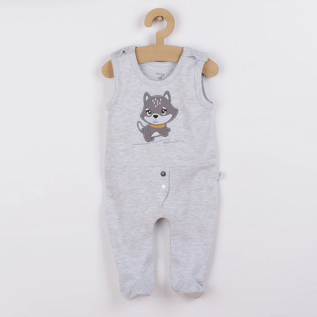 Ensemble en coton 3 pièces KOALA Doggy, stylé et confortable, pour bébés dès la naissance. Comprend une petite bonnet, un gilet et une grenouillère avec un adorable motif de chien. Le coton 100 % doux est délicat pour la peau sensible, la fermeture à pressions facilite l’habillage et l’image doublée protège contre les irritations.