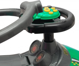 Grâce aux repose-pieds amovibles et aux protections latérales, vous adaptez facilement l’équipement à l’âge et aux compétences de l’enfant. Le volant avec panneau musical et klaxon stimule les sens et transforme chaque balade en aventure amusante. Le rangement sous le siège accueille de petits jouets ou les indispensables de voyage.