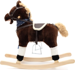 Le cheval à bascule Baby Mix offre aux enfants une expérience de chevauchée authentique. Fabriqué en peluche douce, il possède un foulard stylé et des boutons cachés dans les oreilles qui déclenchent des sons de galop, des hennissements, des mouvements de la queue et de la bouche ainsi qu’une chanson de cow-boy. Les patins de bascule en bois profilés empêchent le basculement, tandis que les étriers métalliques, les poignées et la selle confortable garantissent confort et stabilité pendant la bascule.