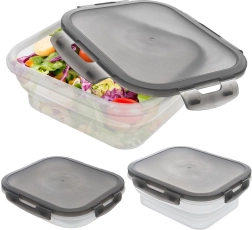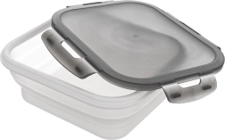 La boîte alimentaire pliable en silicone d’une capacité de 1 litre est une excellente solution pour le stockage quotidien et le transport des repas. Le couvercle avec joint en silicone et quatre clips assure une étanchéité fiable contre les fuites de liquides et les odeurs. Le corps translucide facilite le contrôle du contenu et, grâce à sa compacité, elle prend un minimum de place dans un tiroir, un sac à dos ou un sac à main.