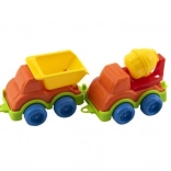 Un camion-benne, une bétonnière et d'autres engins invitent au jeu créatif. Les enfants peuvent transporter, charger et « construire » selon leur imagination.