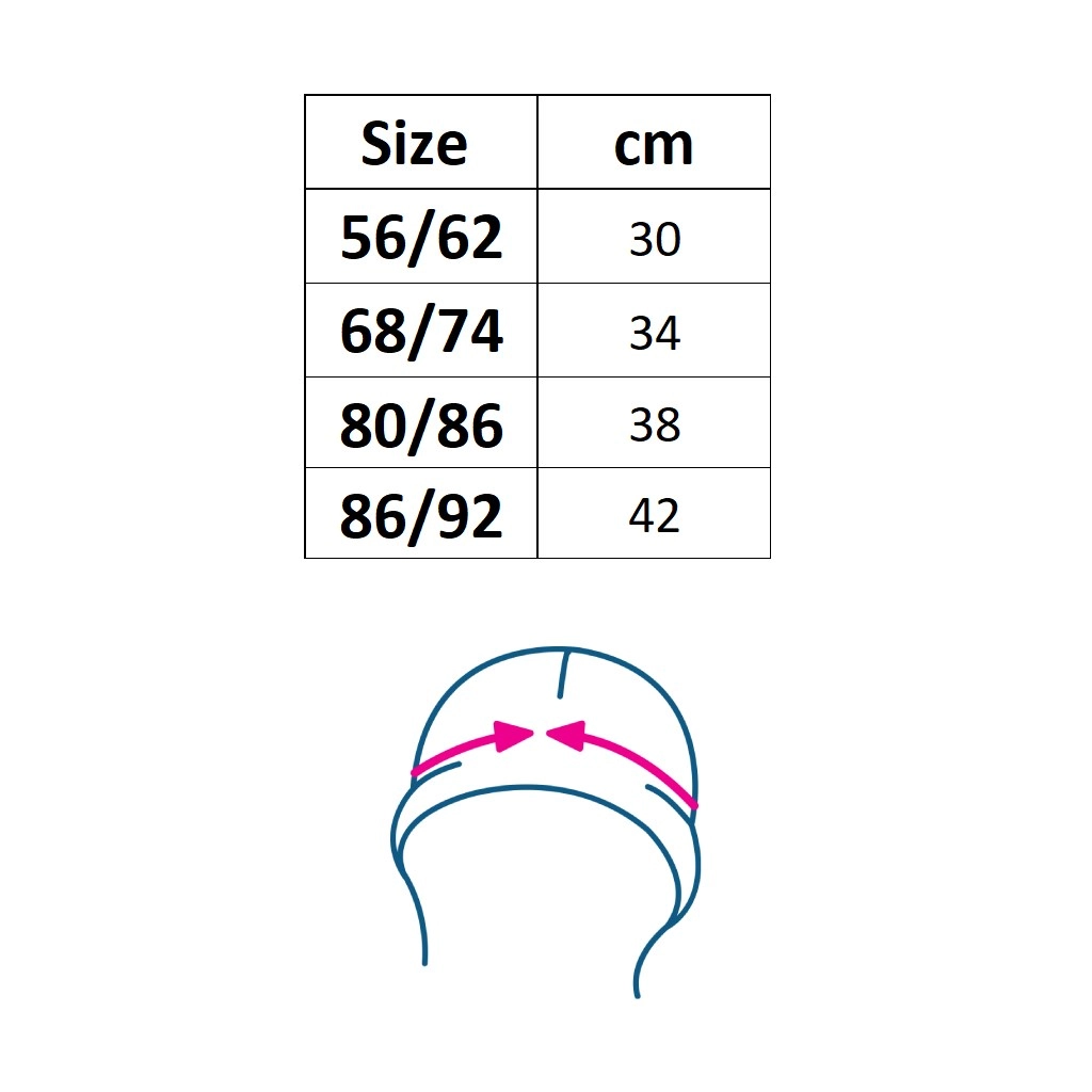 Bonnet pour bébé stylé en 100 % coton pour un confort maximal. Matière douce et respirante qui enveloppe délicatement la tête de bébé, ne comprime pas et tient parfaitement. Idéal au quotidien et pour la poussette.