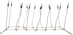 Suspension à l’aide d’œillets métalliques entre deux points fixes (p. ex. arbres)