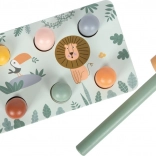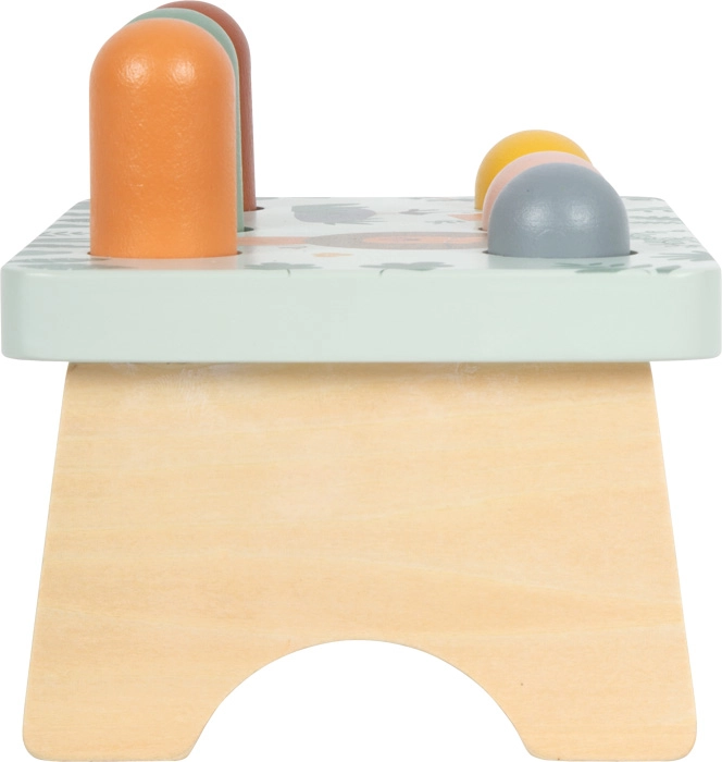 Découvrez le banc à marteler ludique au motif safari de small foot, en bois 100 % certifié FSC. À l’aide du marteau, les enfants enfoncent les chevilles et vivent un moment surprenant : lorsqu’une cheville disparaît, une autre ressort de l’autre côté ! Ce jouet aux adorables motifs d’animaux, aux bords lisses et arrondis et à la structure en bois robuste favorise la motricité fine, la coordination œil–main et la compréhension de la cause et de l’effet.