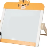 Ce tableau de table 2-en-1 combine une surface à craie et un tableau blanc magnétique effaçable à sec dans un format compact. Grâce au support pliant, vous le placez facilement sur la table et le rangez de manière compacte après le jeu. Le mignon motif safari petit tigre stimule l’imagination des enfants et les inspire à jouer à l’école comme à apprendre en autonomie.
