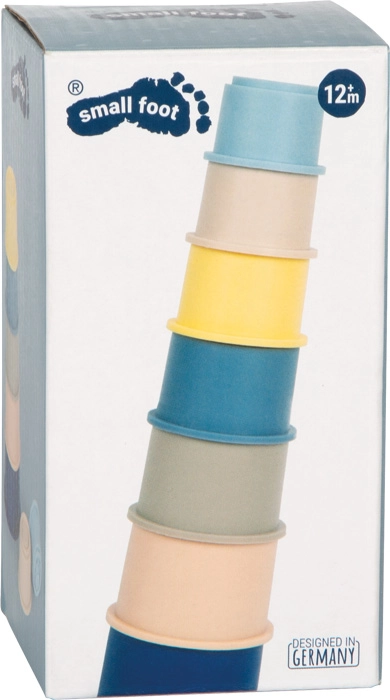 Ensemble de 7 gobelets en silicone souple SMALL FOOT sans BPA, offrant un empilage et un encastrement ludiques à la maison, dans le bain et au bac à sable. Grâce aux adorables motifs d’animaux et aux tailles variées, les enfants développent naturellement la motricité fine, la coordination œil–main et la perception des tailles et des formes. Le matériau est sécurisé, flexible, inodore et facile à nettoyer.