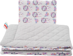 Ensemble réversible pour poussette NEW BABY au design gris attrape‑rêves, à la fois stylé et confortable. Il combine un velours doux et un coton respirant pour un confort maximal du bébé. Comprend un petit oreiller et une couette avec un garnissage anti‑allergique, des rubans colorés pour stimuler l’attention, et des matériaux conformes à la norme Oeko‑Tex Standard 100.