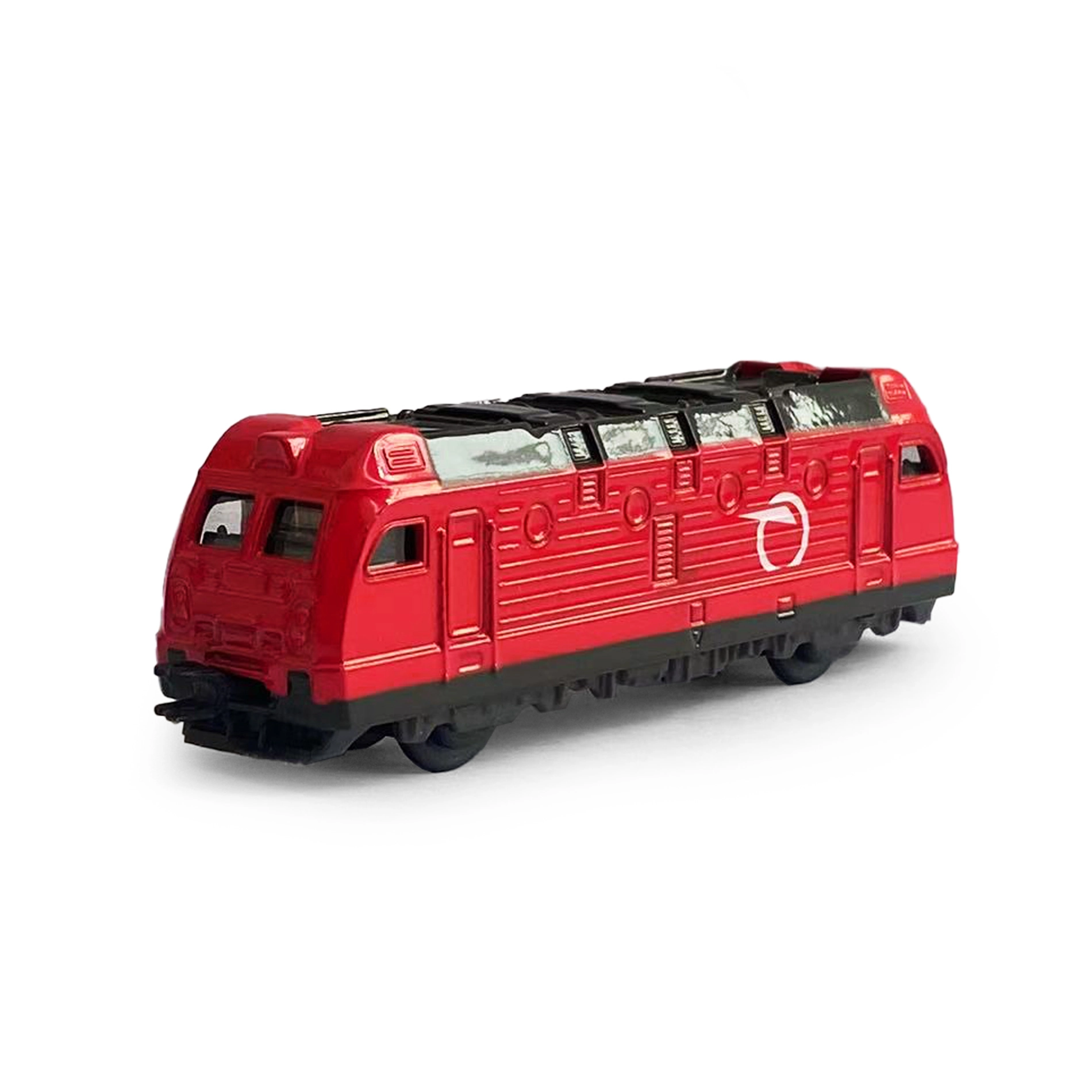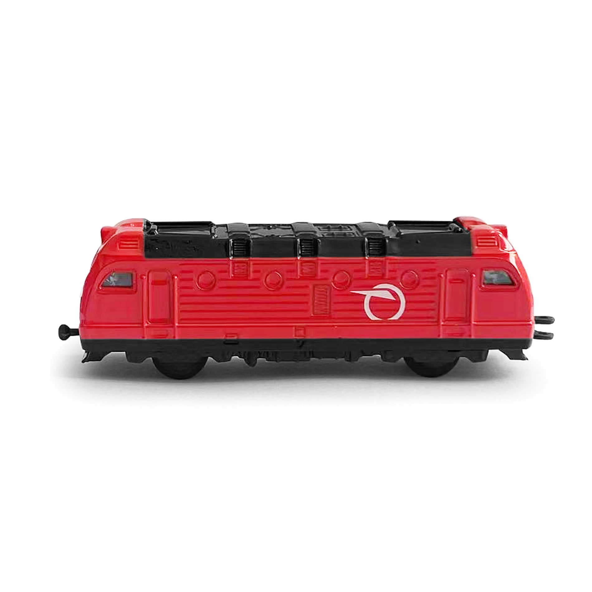 Cette locomotive en métal, réalisée avec un grand sens du détail et mesurant environ 9 cm de long, se distingue par son design précis, ses éléments contrastés et son marquage inspiré par la Železničná spoločnosť Slovensko. Grâce à la roue libre, la conduite est fluide et silencieuse sur surface plane comme sur des rails de jeu d’un écartement de 1,2 cm.