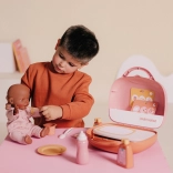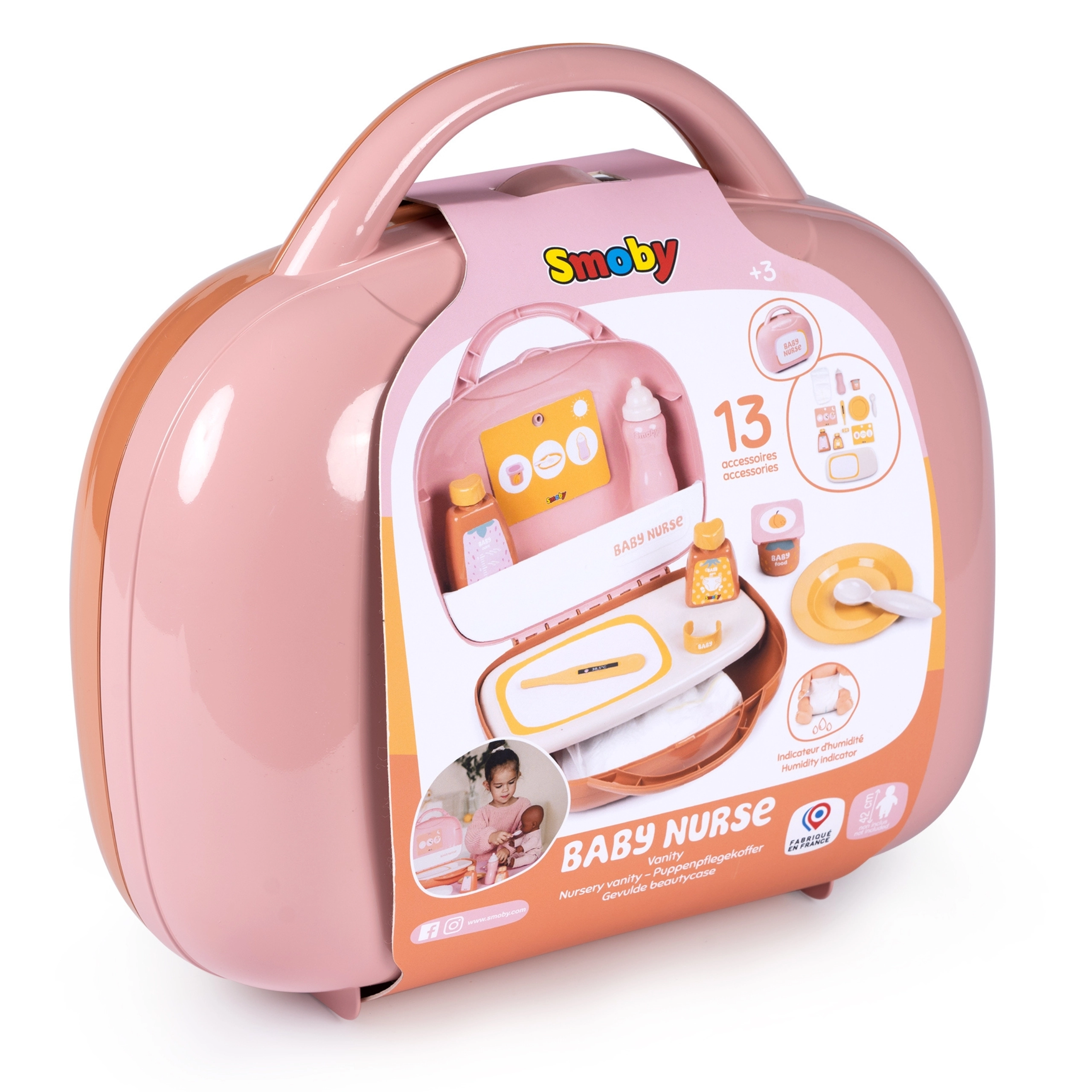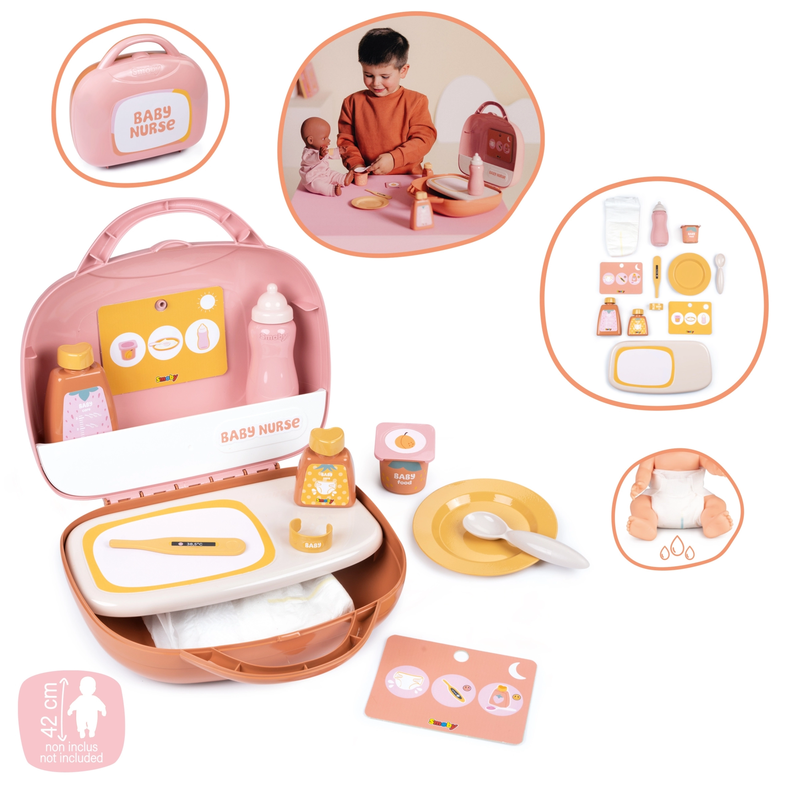 Adorable set portable de la marque SMOBY, cadeau idéal pour les petits soigneurs. Dans une valisette compacte, vous trouverez 13 accessoires pour des soins réalistes d’une poupée jusqu’à 42 cm. Les enfants peuvent nourrir, prendre la température et imiter les rituels du quotidien, développant ainsi créativité, imagination et compétences sociales. La valisette sert à la fois de rangement et de station de jeu – tout est à portée de main à la maison comme en déplacement.