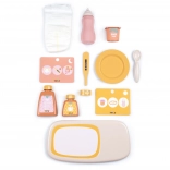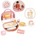 De la bouteille, l’assiette et la petite cuillère au thermomètre et à la couche, jusqu’aux cartes « jour » et « nuit » – tout pour un jeu authentique de nourrir et soigner.