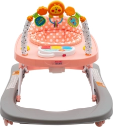 Le trotteur pour bébé NEW BABY, en version rose, aide aux premiers pas tout en offrant beaucoup de divertissement. Grâce à ses quatre roues en silicone, ses patins de sécurité et sa hauteur réglable, il est stable et confortable. Il inclut un petit piano coloré amovible et un arceau avec des jouets amusants qui stimulent la motricité et les sens.