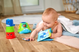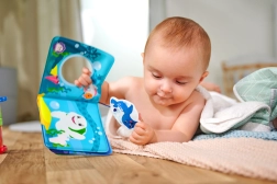 Léger et flottant, ce livre de bain ravira les enfants par ses couleurs vives et ses illustrations épurées, qui favorisent la perception des formes et le développement du vocabulaire. Sa matière souple est agréable au toucher, facile à nettoyer et sans danger pour les premières dents.