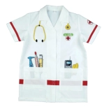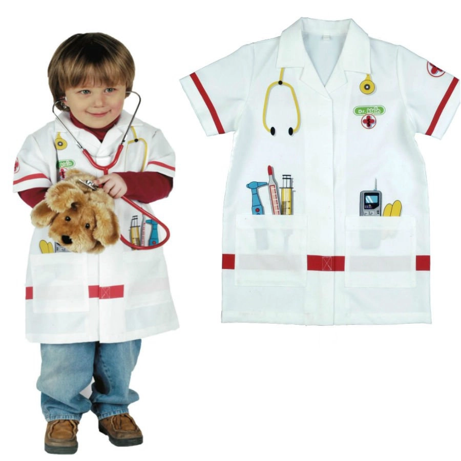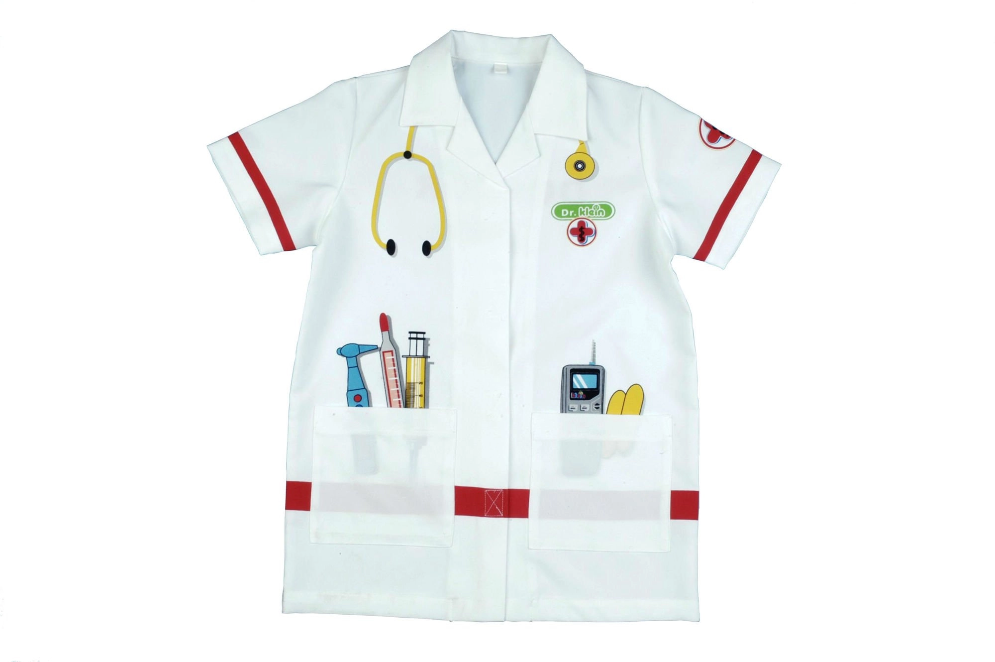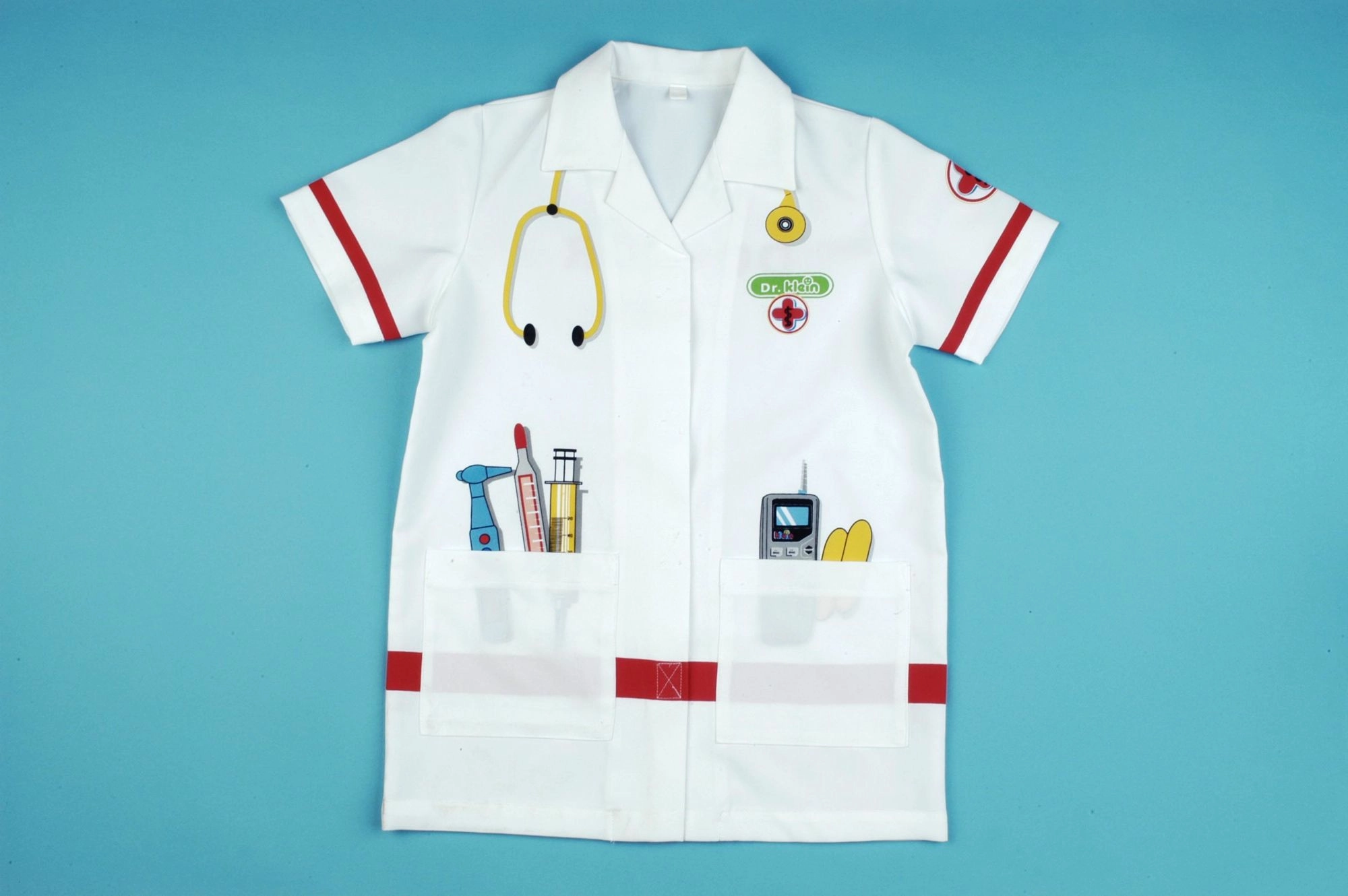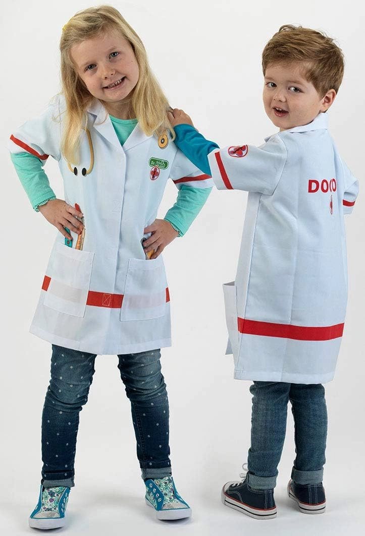 Un design universel convient aux filles comme aux garçons et, grâce aux dimensions bien pensées, s’ajuste parfaitement aux enfants de 3 à 5 ans. Deux grandes poches peuvent contenir de petits accessoires de jeu de docteur pour tout avoir sous la main.