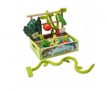 Ce set coloré offre tout pour un jeu réaliste et amusant : une caisse de plantation avec « terre » en tissu, une vigne en corde, des carottes, des pommes, un poivron, du chou frisé, deux paniers et une caisse enregistreuse avec de l’argent. Les enfants peuvent « cultiver » la récolte, la cueillir puis la vendre sur leur propre stand – le tout de manière sûre et stimulante.