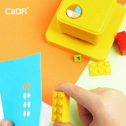 Découvrez un loisir créatif en papier associé à des éléments de construction. Le perforateur réglable CADA en bleu permet aux enfants de réaliser facilement des trous réguliers dans les gabarits et les cartes, qu’ils remplissent ensuite avec des briques colorées. Grâce à la plaque magnétique transparente, le travail est précis, propre et sûr.