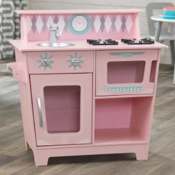 La cuisine d'enfants KidKraft offre de nombreuses fonctionnalités qui développent l'imagination des enfants. Elle est équipée d'un évier, d'une cuisinière multifonctionnelle et d'un four à micro-ondes. Les plaques détaillées et les boutons rotatifs qui émettent des sons de clics contribuent à une expérience de jeu réaliste.