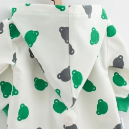 Vous cherchez une pièce confortable et ludique pour la garde-robe de votre enfant ? La combinaison de survêtement pour bébé NEW BABY Little One en vert est un choix idéal, à la maison comme en promenade. Le zip sur toute la longueur facilite le change et l’habillage, tandis que la capuche doublée avec un adorable pompon apporte du style et un confort supplémentaire.