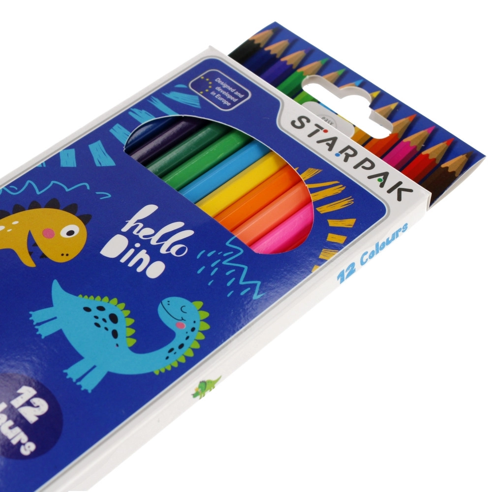 Crayons de couleur motif dinosaures, set de 12 couleurs