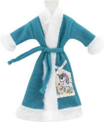 Peignoir stylé pour poupées avec surface veloutée et ceinture à nouer qui réchauffe après le bain et accompagne les rituels du soir. Proposé en assortiment de couleurs et motifs (p. ex. licorne), il se combine facilement avec d’autres tenues.