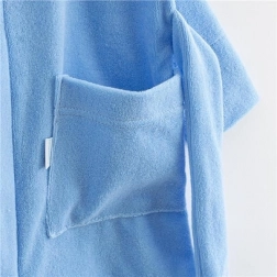 Le peignoir se noue avec une ceinture cousue, grâce à laquelle la ceinture ne se perd pas et ne gêne pas les mouvements. À utiliser à la maison après le bain, à la piscine ou au bord de la mer. Un excellent choix pour les enfants qui aiment le confort et la chaleur.
