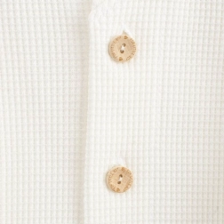 La fermeture pratique à boutons facilite l’habillage et les boutons en bois soulignent le design élégant. La veste convient à un port toute l’année – pour la poussette, les visites et les événements spéciaux.
