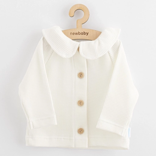 Élégante veste/cardigan pour enfant NEW BABY Laura avec un joli col et une fermeture pratique à boutons. Boutons en bois pour un look élégant, 100 % coton de qualité pour une douc eur et une respirabilité optimales. Idéale pour un port toute l’année, au quotidien comme pour les occasions spéciales.