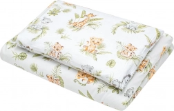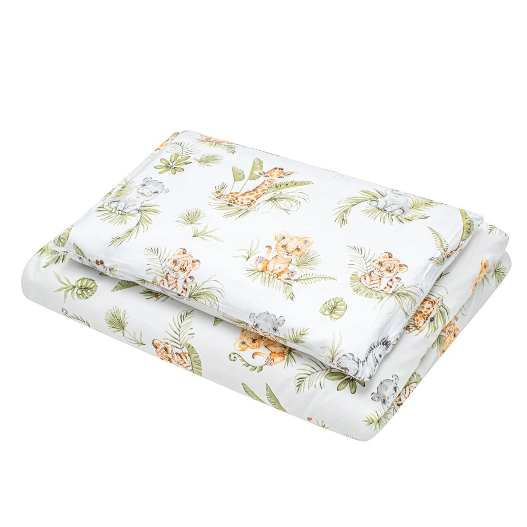 Offrez à votre bébé confort et sécurité avec le set 3 pièces pour lit NEW BABY Jungle. La parure est confectionnée en coton 100 % naturel, doux au toucher, respirant et délicat pour la peau sensible des enfants. Le design aux couleurs apaisantes et au motif jungle crée un environnement agréable pour le sommeil et la détente.