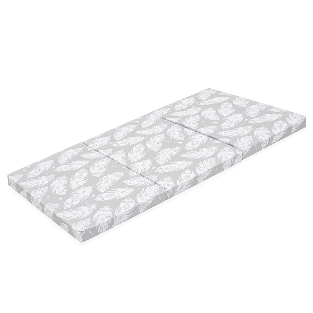 Le matelas pliant pour lit bébé NEW BABY de dimensions 120×60×5 cm est idéal à la maison comme en voyage. Son noyau en mousse de polyuréthane T-1830 se distingue par une solidité accrue et une résistance à la déformation, favorisant une position correcte de la colonne vertébrale et un sommeil paisible. Il possède une housse en coton facilement amovible au délicat motif de plumes, est antiallergique et est livré avec un sac de transport pratique.