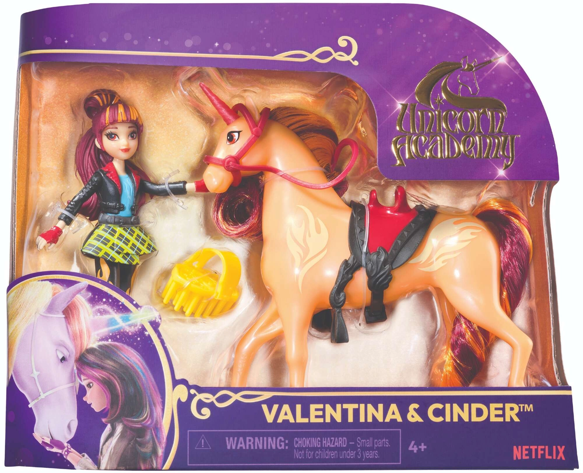 Le set Valentina & Cinder de Spin Master est inspiré de la série animée populaire UNICORN ACADEMY. Les enfants peuvent revivre des aventures au bord du Sparkle Lake, renforcer les amitiés et découvrir les pouvoirs magiques des licornes. La poupée porte la tenue emblématique de la série et, grâce à ses membres articulés, prend facilement différentes poses en selle.