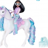• Set complet : poupée Layla, licorne Glacier, brosse pour l’entretien de la crinière et de la queue.