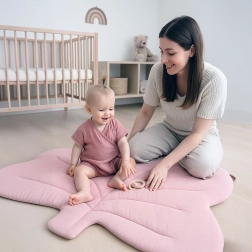 Ce tapis de jeu premium en mousseline est idéal pour le jeu quotidien et le repos de bébé. Grâce à ses dimensions de 107 × 100 cm, il offre un espace confortable et, avec sa forme de feuille d’érable, devient un accessoire stylé pour la chambre d’enfant.