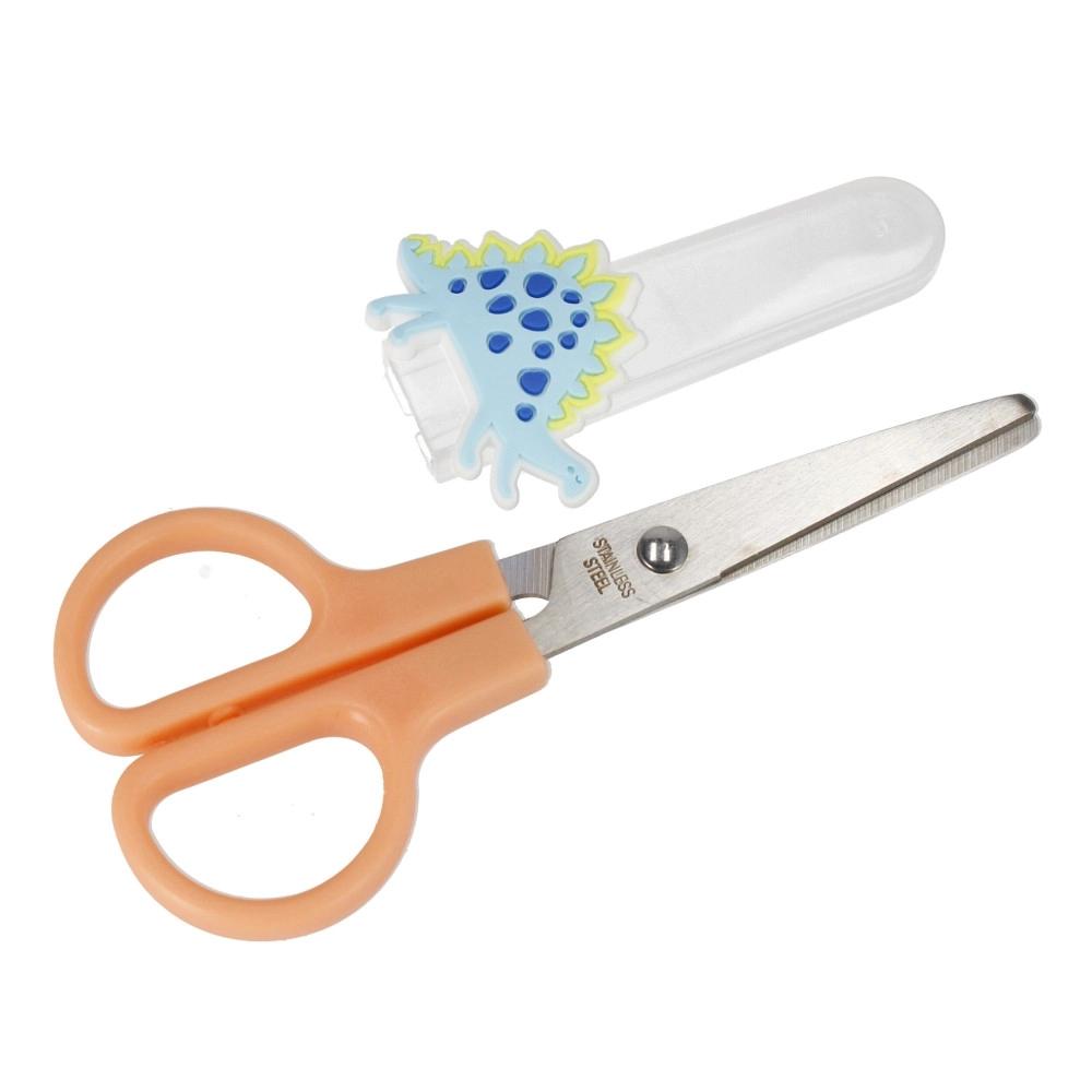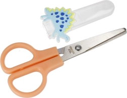 Adorables ciseaux pour enfants avec motif dinosaure, longueur 12 cm, idéaux pour les premières activités créatives. Ils possèdent des pointes arrondies pour une utilisation plus sûre, un étui de protection pour les lames et des poignées en plastique confortables pour une prise en main facile. Conviennent aux enfants dès 3 ans. Prix pour 1 pièce.