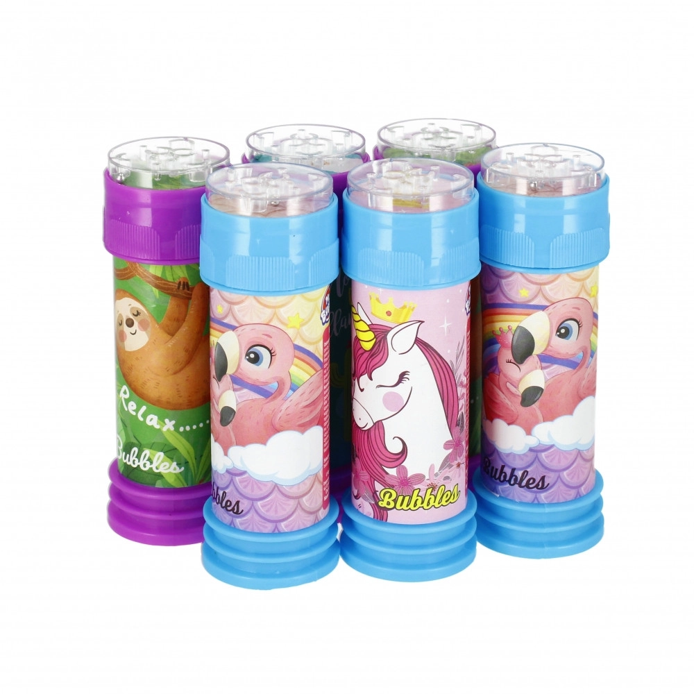 Choisissez parmi 4 designs ludiques (p. ex. licorne, paresseux, flamant rose, lama) et offrez aux enfants une activité sûre et appréciée au parc, pour les fêtes et les excursions. Les 55 ml de solution garantissent beaucoup de bulles et des heures de joie.