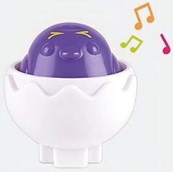 - 6 poussins qui couinent cachés dans des coquilles – chaque pression récompense l’enfant par un son.