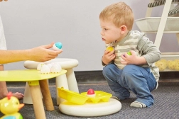 Les poussins colorés à l’intérieur des œufs couinent lorsqu’on les presse. L’enfant développe ainsi naturellement l’ouïe, le toucher et la compréhension de la cause et de l’effet.
