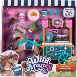 Le poney Cocoa de la série populaire WILD MANES arrive avec un chariot détaillé Bakery Café, où il peut servir boissons et pâtisseries. La figurine possède une crinière finement travaillée avec des tresses, de grands yeux expressifs et porte un tablier stylé – prête pour chaque aventure. Grâce aux clips en forme de fer à cheval, Cocoa peut tenir des accessoires et jouer facilement différentes scènes.
