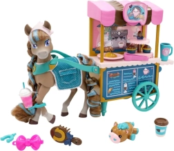 Le coffret comprend des pâtisseries, des boissons, une brosse, un présentoir à cupcakes et un adorable petit compagnon – tout pour des heures de jeu et de soin du poney.