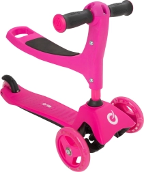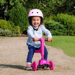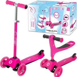 La trottinette enfant 2-en-1 EVO rose grandit avec votre enfant : en un clin d’œil, transformez-la de porteur avec siège en tricycle stable. Grâce aux deux roues avant, au plateau bas et à la direction par inclinaison, elle offre une excellente stabilité, une maniabilité facile et un freinage sûr via le garde-boue arrière. Le guidon réglable en hauteur, les roues silencieuses avec roulements ABEC-5 et le plateau antidérapant assurent une conduite confortable et ludique pour les plus petits comme pour les plus grands enfants.