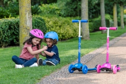 Les grandes roues avant et le plateau bas offrent assurance et stabilité sur surfaces planes. Les poignées en caoutchouc sont agréables en main, le frein arrière sur garde-boue stoppe en toute fiabilité et les roulements ABEC-5 garantissent une conduite silencieuse et fluide. Le réglage en hauteur du guidon en T s’adapte facilement à la taille actuelle de l’enfant.