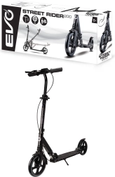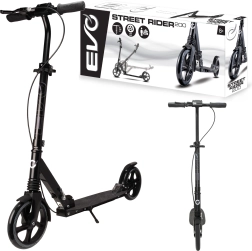 La trottinette EVO Street Rider 200 est un excellent choix pour les déplacements urbains comme pour les balades de loisir. Grâce aux grandes roues de 200 mm avec roulements ABEC-7, elle démarre facilement et roule en douceur; la suspension absorbe les irrégularités et la construction pliable assure un transport et un rangement aisés. La hauteur du guidon réglable s’adapte à la taille du rider, de sorte que la trottinette puisse accompagner l’enfant comme l’ado.