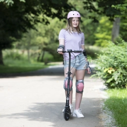 La trottinette légère et robuste EVO Street Rider 200 pour les riders dès 8 ans offre de grandes roues de 200 mm, une réduction de la résistance au roulement grâce aux roulements ABEC-7, une suspension avant et arrière, un mécanisme de pliage pour un transport facile et un guidon réglable en hauteur. L’arrêt sûr est assuré par un frein arrière à pédale et un frein avant à main, tandis qu’une plateforme antidérapante et une béquille intégrée augmentent la stabilité et la praticité.