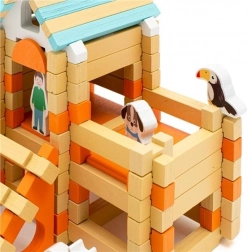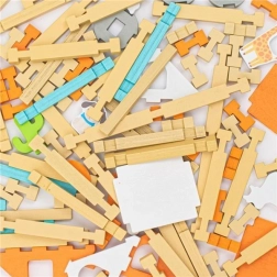 Ce jeu de construction en bois est un excellent choix pour les enfants curieux qui aiment bâtir et inventer des histoires. Les pièces sont lisses, résistantes et agréables au toucher, ce qui les rend très faciles à manipuler. La construction évolue avec l’enfant – des petites maisons simples jusqu’aux structures plus complexes qui développent la perception spatiale.