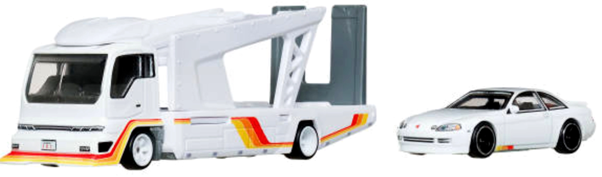 Découvrez le set premium HOT WHEELS de la collection Premium Team Transport, qui allie élégance et esprit de course. Le modèle Toyota Soarer en blanc et le transporteur Kousoku Hauler #79 forment un duo parfait pour votre vitrine comme pour un jeu créatif.