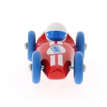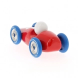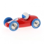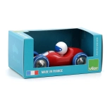Élégante voiture de course en bois VILAC d’un rouge vif avec des roues bleues, pour le plaisir des petits comme des grands. Fabriquée en bois dur laqué, elle possède des roues métalliques gainées de caoutchouc pour une conduite fluide et convient au jeu comme à la décoration design. Fabriqué en France.