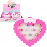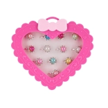 Le coffret rose en forme de cœur avec une collection de bagues pour enfants ravira toutes les petites coquettes. Chaque bague est décorée d’une imitation de perle colorée et de strass sur un anneau argenté. Grâce au rangement bien organisé, les bijoux sont toujours à portée de main pour les jeux de déguisement et les occasions festives.